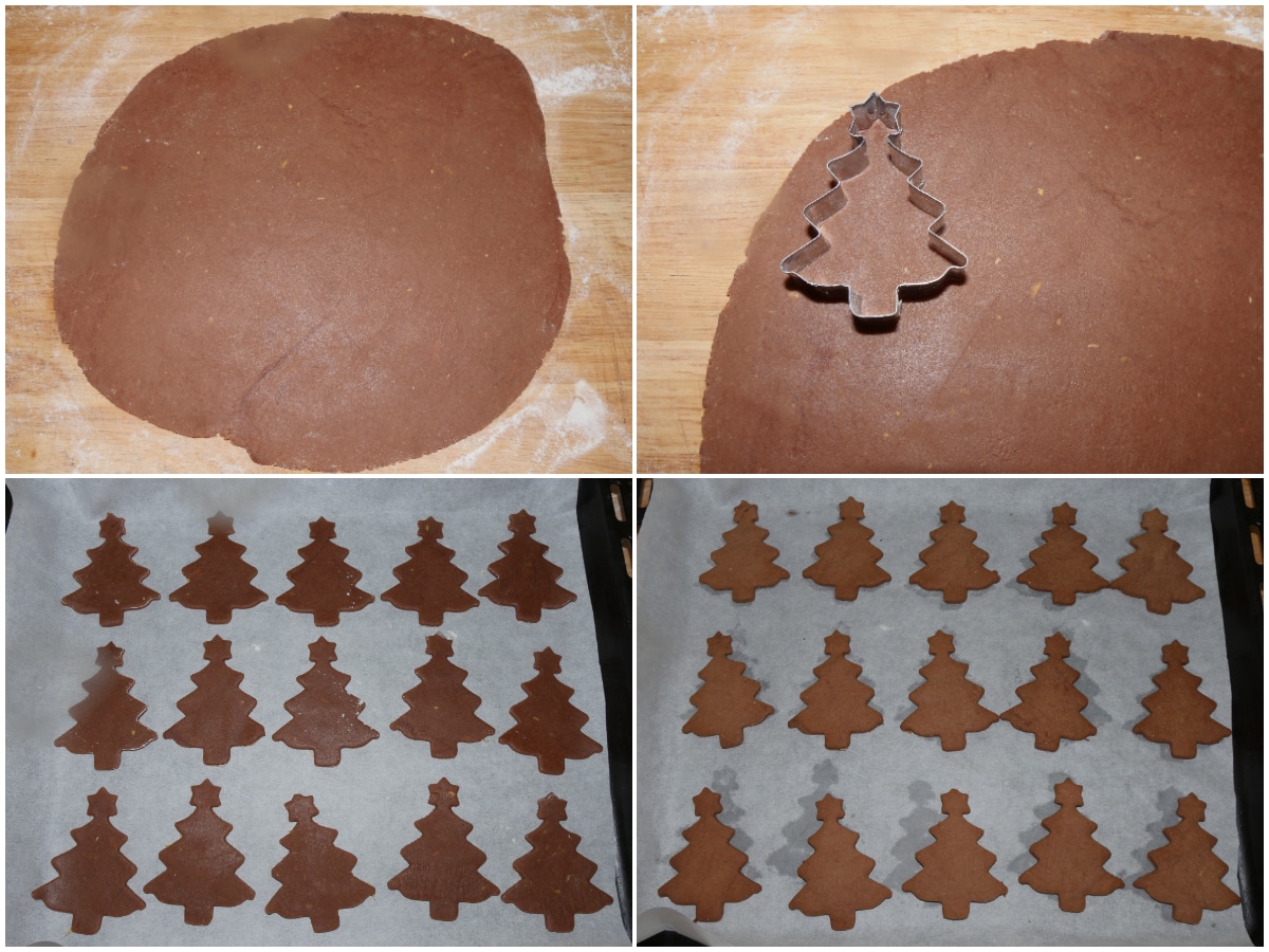 Riprendete il panetto, stendetelo in una sfoglia abbastanza sottile e create i vostri alberelli (la mia formina aveva la stellina già integrata, ma naturalmente va bene anche un alberello normale, senza stella).