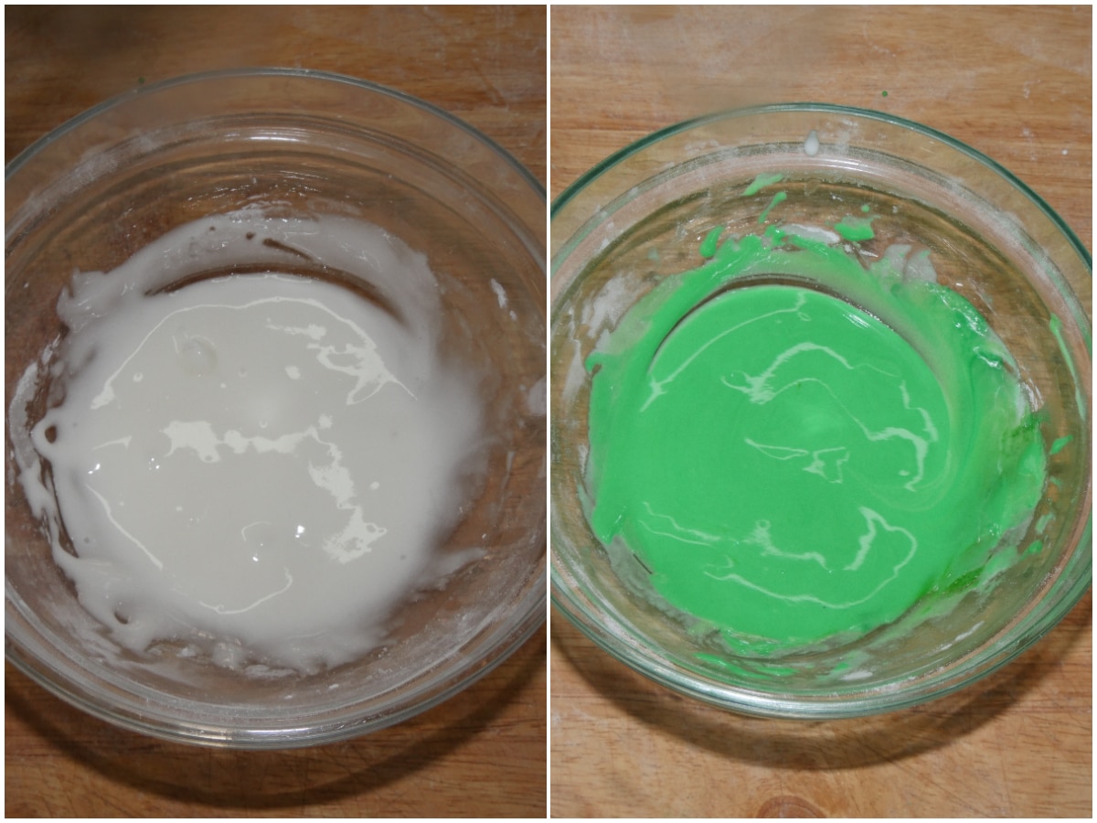 Una volta ottenuta una bella ghiaccia liscia, aggiungete il colorante alimentare e mescolate bene per ottenere un colore uniforme.