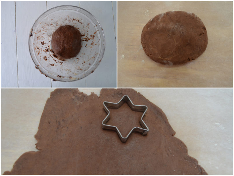 Quindi riprendete l'impasto, stendetelo in una sfoglia spessa circa 3 mm e iniziate a creare i vostri biscottini: io ho usato uno stampino a stella.