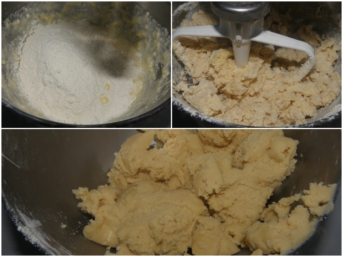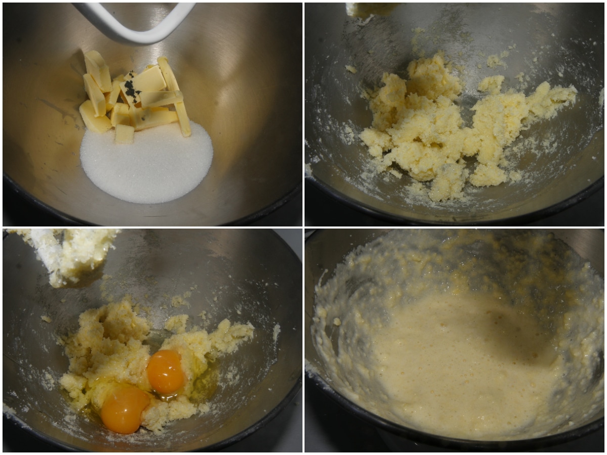 Preparate la pasta frolla: lavorate il burro con zucchero e vaniglia fino ad ottenere una consistenza a pomata, poi incorporate l'uovo (in foto ne vedete 2 perché avevo fatto il doppio della dose, ma venivano davvero troppi biscotti, quindi meglio dimezzare la dose con le quantità che ho scritto negli ingredienti).