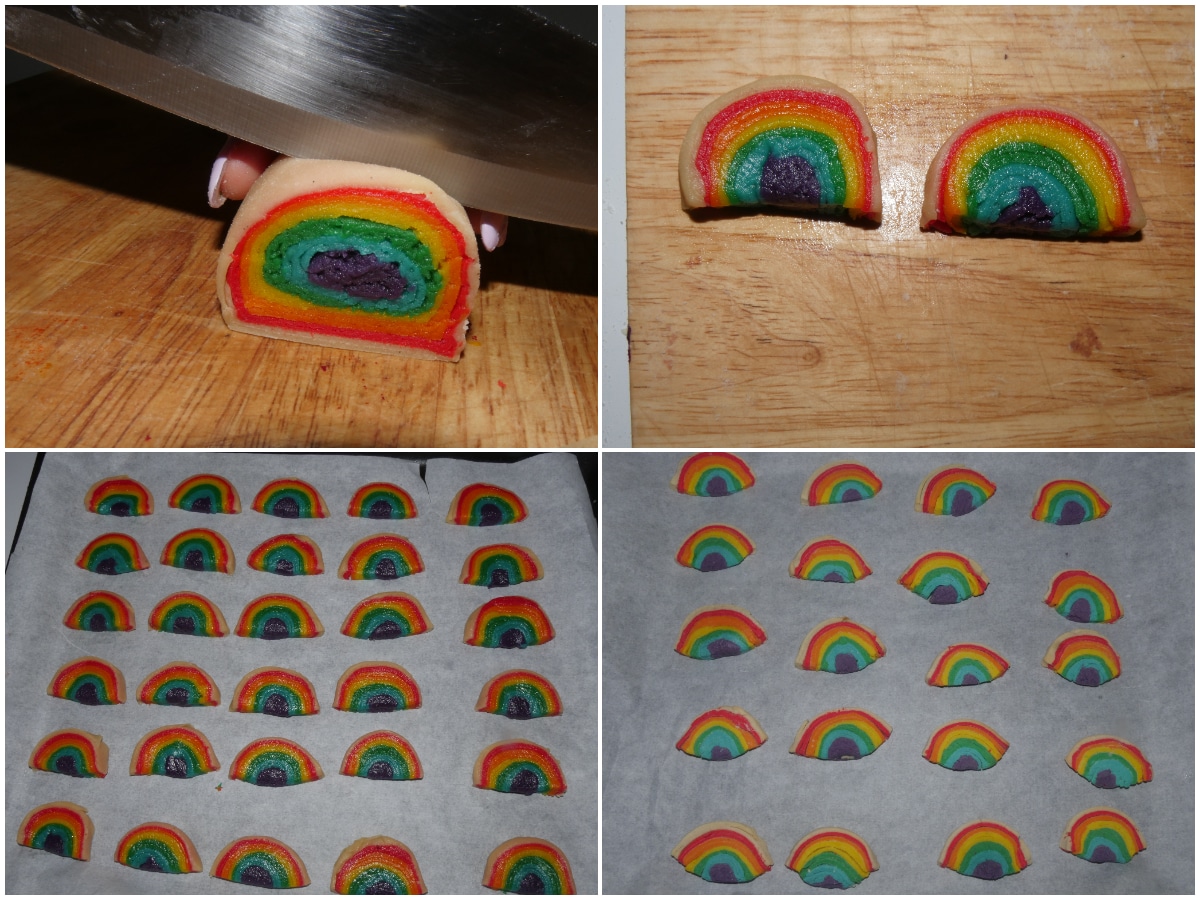 I biscotti arcobaleno sono un'idea carinissima per dei biscotti da preparare con i vostri bimbi, o semplicemente se avete voglia di creare qualcosa di carino, che sia per manifestare per la Pace o il Gay Pride, per Carnevale o semplicemente per rallegrare la vostra tavola. So che potrebbero sembrare complicati da fare, ma vi assicuro che non è così: una volta creata e colorata la frolla, basterà stenderla, creare un salsicciotto con il primo colore e poi arrotolare tutti gli altri colori, uno per volta, intorno al primo... Insomma, guardando le foto passo passo del mio procedimento vi assicuro che sarà semplicissimo! Detto questo vi lascio alla ricetta e ci leggiamo più tardi :*
