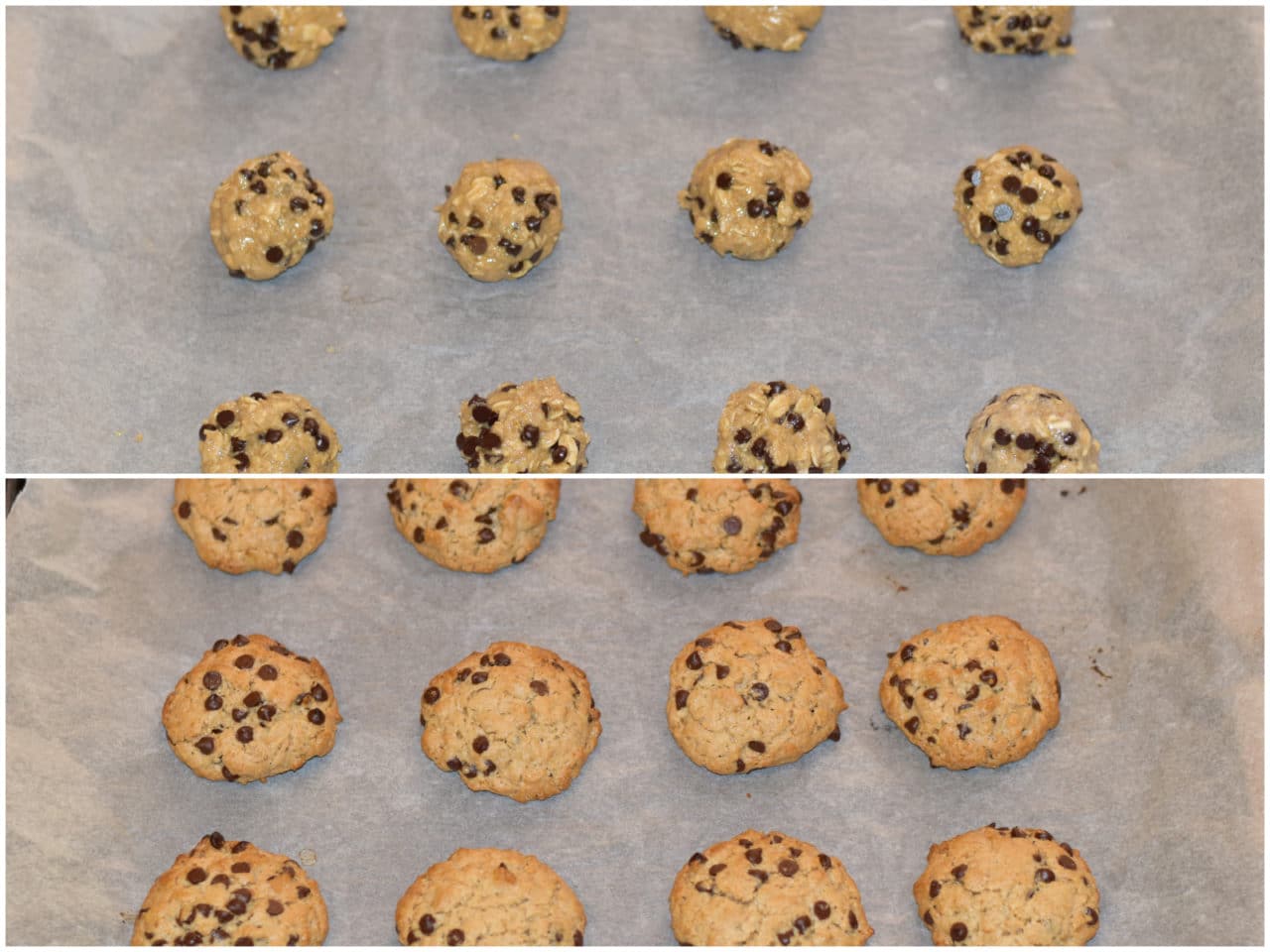 Formate i biscotti creando delle palline e disponeteli sulla teglia rivestita di carta forno, ben distanziati tra loro, perché in cottura si appiattiranno.