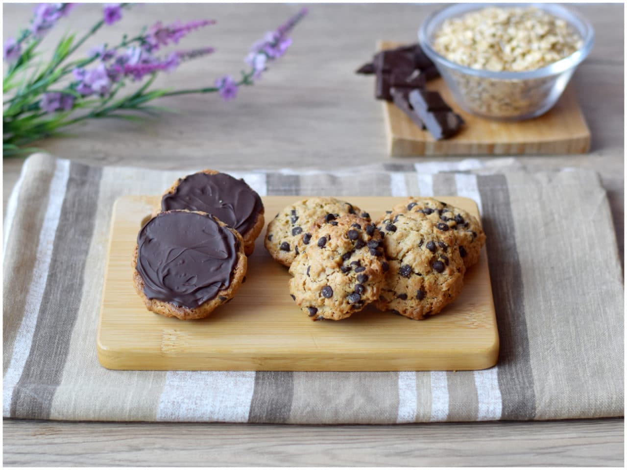 I biscotti con fiocchi d'avena rappresentano un'irresistibile combinazione di gusto e salute, perfetti per una pausa dolce e nutriente in qualsiasi momento della giornata. Grazie all'uso di ingredienti semplici e genuini come i fiocchi e la farina d'avena, questi biscotti sono una fonte di energia sana e ricca di fibre, ideale per affrontare la giornata con la giusta dose di energia. La dolcezza delle gocce di cioccolato conferisce il giusto grado di golosità all'avena, creando un connubio di sapori che conquista immediatamente il palato, al punto che io ho deciso di provare anche a glassare una metà dei biscotti con un leggero strato di cioccolato fuso. La semplicità e rapidità della preparazione, unita alla bontà del risultato finale, rende questi biscotti una scelta perfetta per chiunque desideri deliziarsi con un dolcetto genuino e fatto in casa. Croccanti all'esterno e morbidi all'interno, sono irresistibili da gustare da soli o accompagnati da una tazza di tè o caffè. Provateli e non ve ne pentirete!