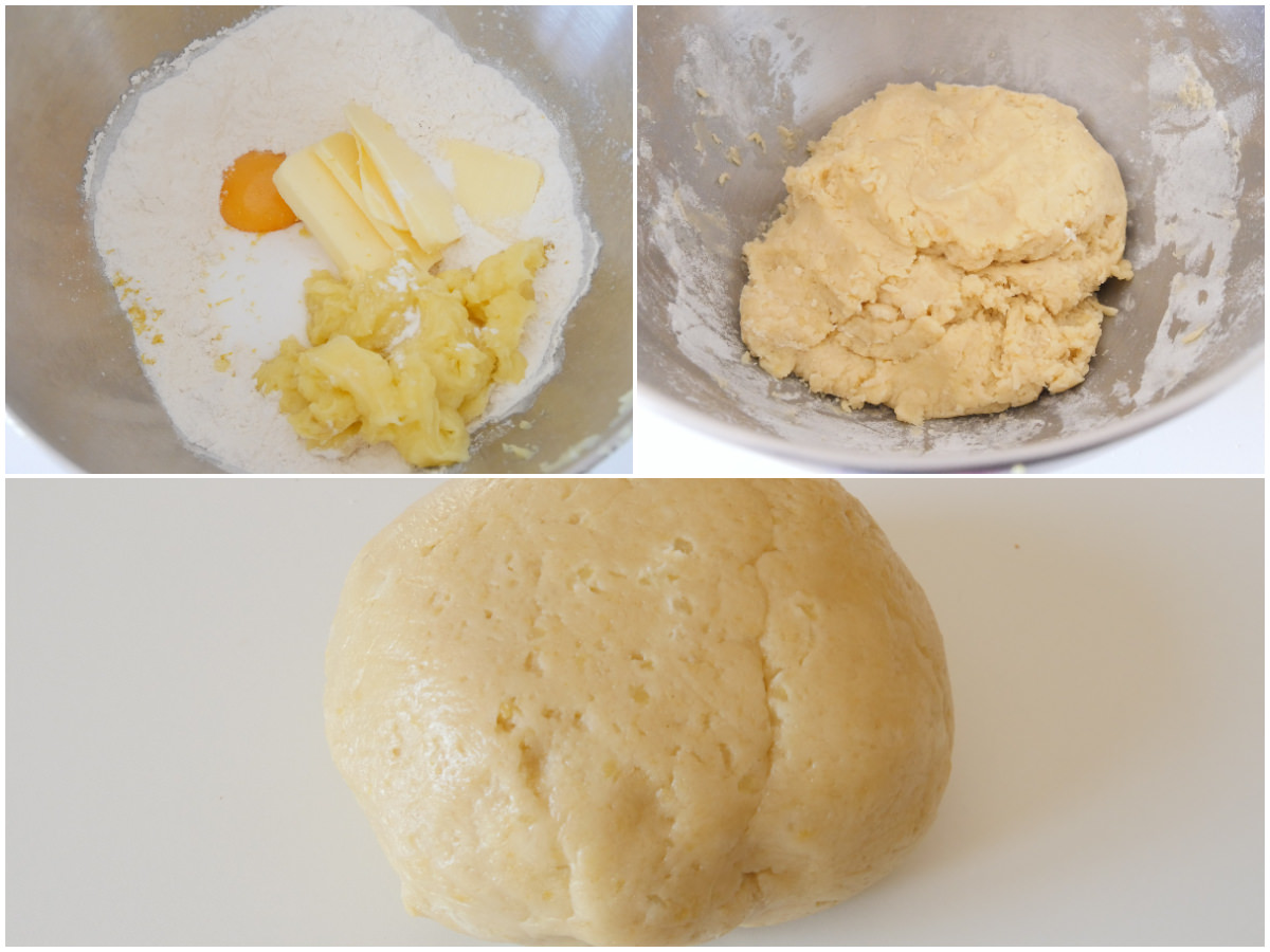 Unite quindi in una ciotola patate, farina, uovo, burro a pezzetti, lievito, zucchero, sale e buccia di limone.
