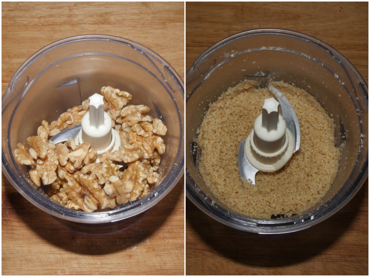 Innanzitutto tritate finemente le noci con un mixer.