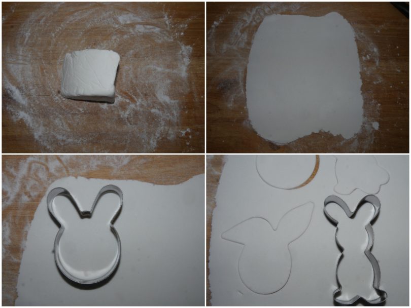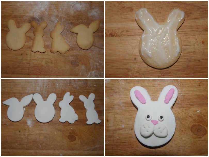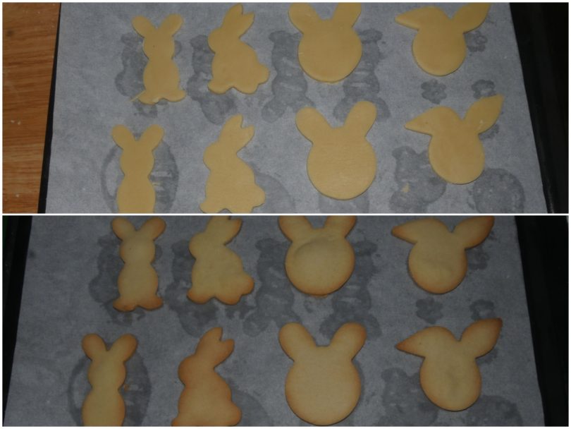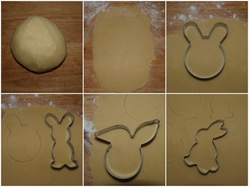 Riprendete il panetto, stendetelo in una sfoglia sottile sul piano di lavoro leggermente infarinato e ricavate i vostri biscotti con tutte le formine a forma di coniglietto che trovate.