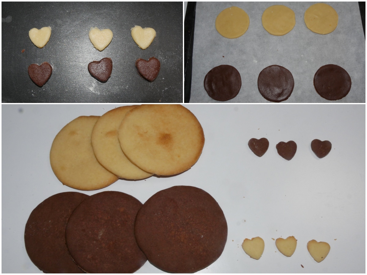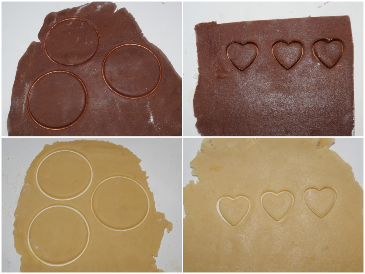 Stendete le 2 frolle, separatamente, e ricavate i biscotti: io ho usato la tazza come tagliabiscotti per ottenere la base, e dei cuoricini piccoli per il manico.