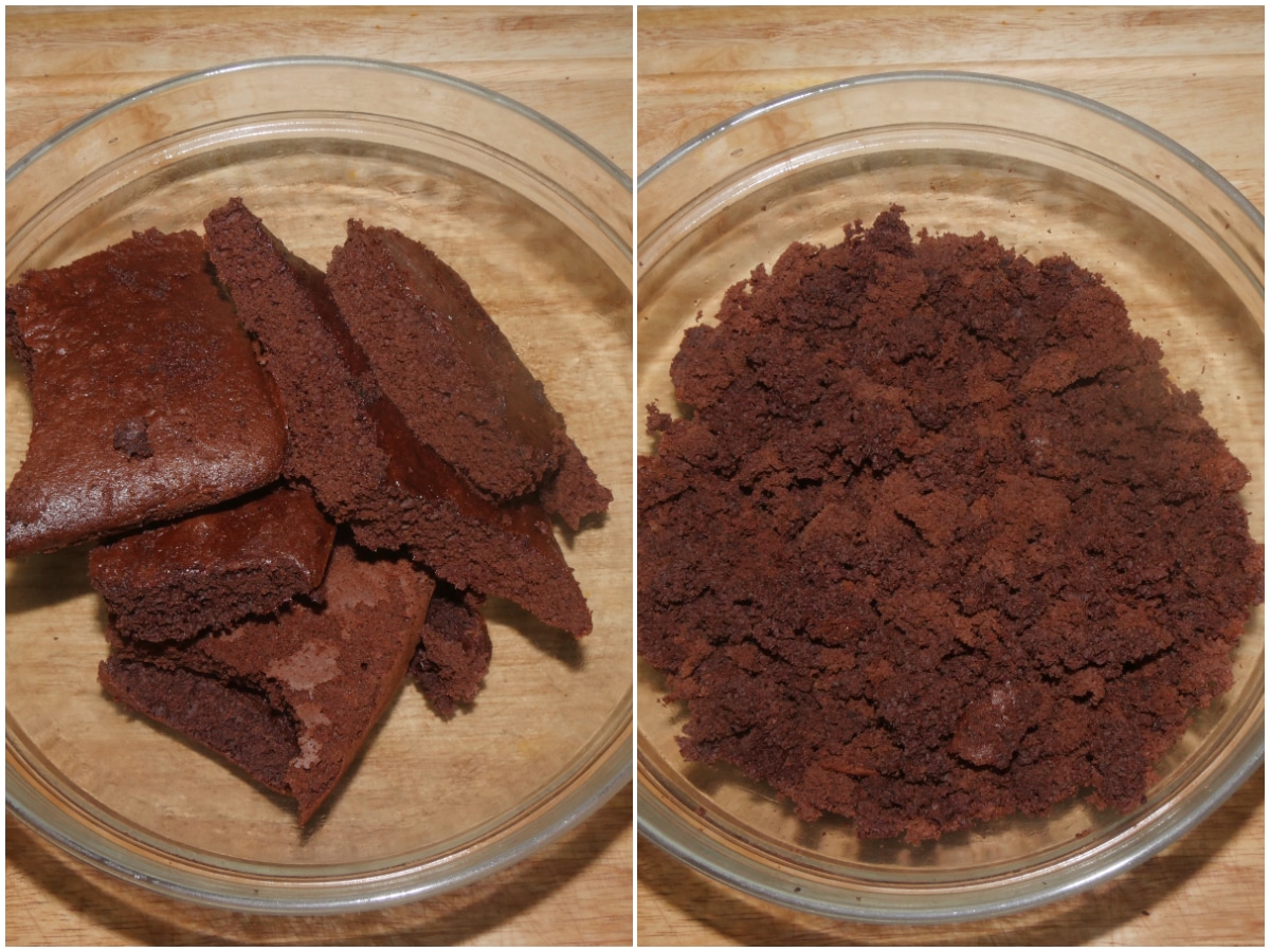 Innanzitutto sbriciolate grossolanamente il pan di Spagna o il dolce che volete consumare.
