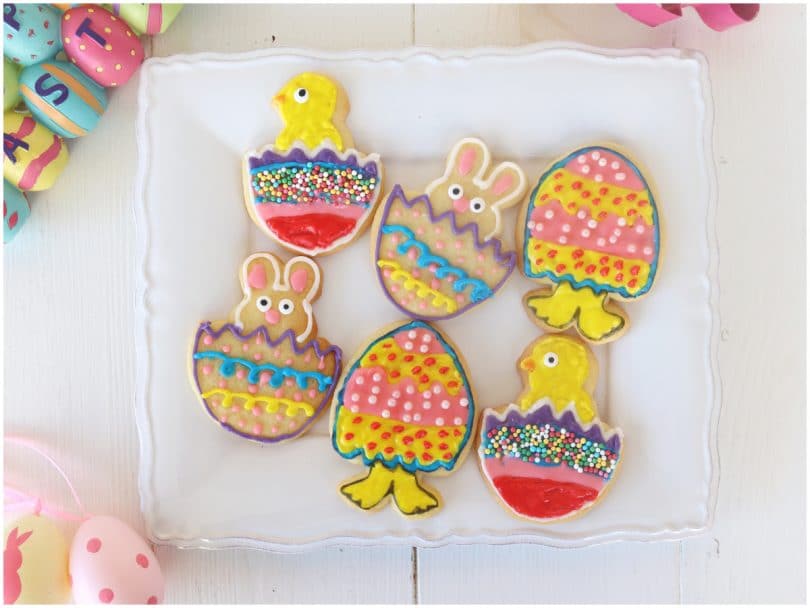 I biscotti di Pasqua sono l'idea perfetta per trascorrere un pomeriggio spensierato insieme ai vostri bambini che si divertiranno un mondo a mettere le mani in pasta e a liberare la loro fantasia. Si tratta di semplici biscotti di pasta frolla ritagliata con le formine a tema, uova, coniglietti e pulcini nel mio caso a tema e decorati con ghiaccia reale colorata con i colori tenui della primavera e della Pasqua. Una volta asciugasti per bene, i vostri biscotti di Pasqua si conservano diversi giorni in una scatola di latta. Questi friabili e leziosi biscottini, sono perfetti anche da regalare o da servire a merenda per accompagnare un te pomeridiano.