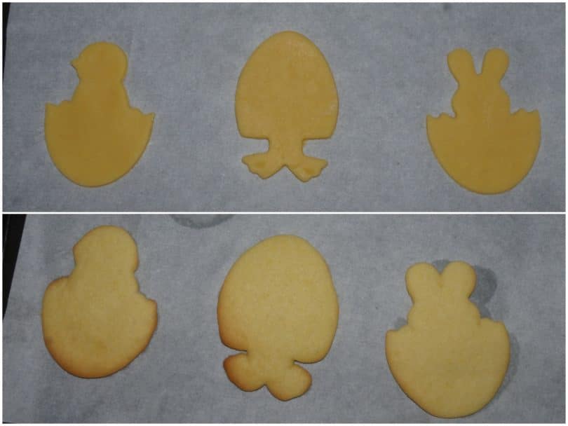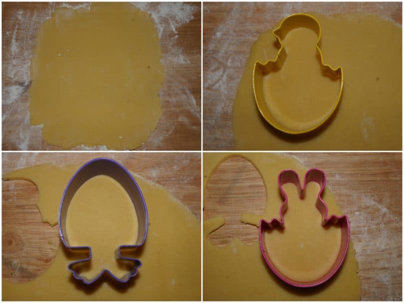 Su un piano infarinato, stendere ora la frolla in una sfoglia di 3 mm di spessore e con le formine di pasqua ritagliate i vostri biscotti.