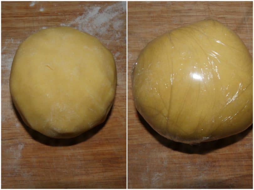 Formate con l'impasto una palla che metterete a riposare in frigo per 30 minuti coperto con una pellicola.