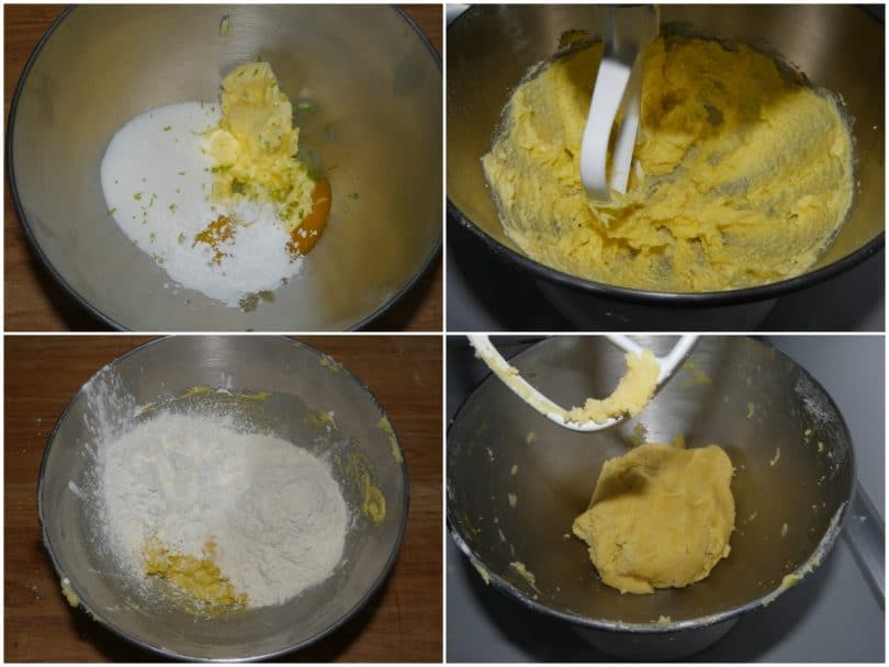 Mettete in una ciotola la farina, fare un buco al centro e mettete burro a tocchetti, uovo, aromi e zucchero.