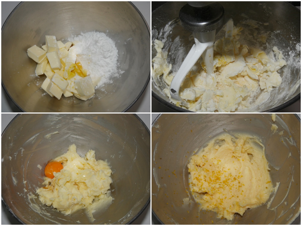 Innanzitutto preparate la pasta frolla Milano: lavorate il burro con zucchero a velo, sale, vaniglia e miele fino ad ottenere una crema, poi incorporate tuorlo, acqua e buccia di limone.