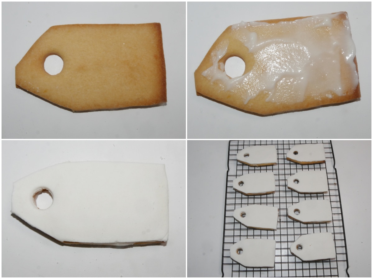 Spennellate i biscotti con un po' di ghiaccia bianca e disponeteci sopra la pasta di zucchero, quindi lasciate asciugare per almeno 2 ore.
