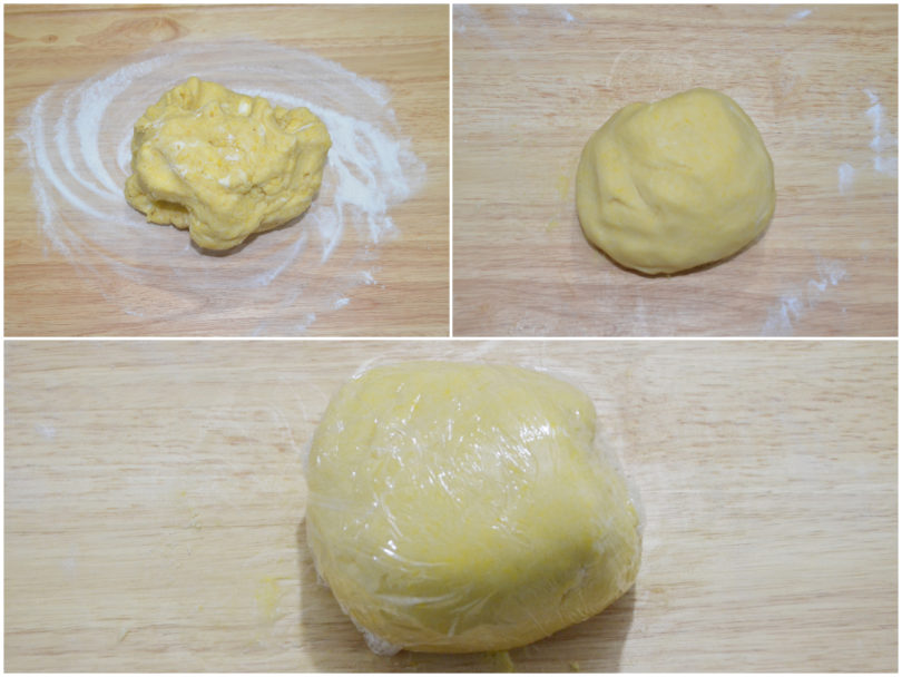 Una volta ottenuto un panetto omogeneo, coprite la pasta frolla ottenuta con la pellicola per alimenti e lasciate riposare in frigo per 30-40 minuti.