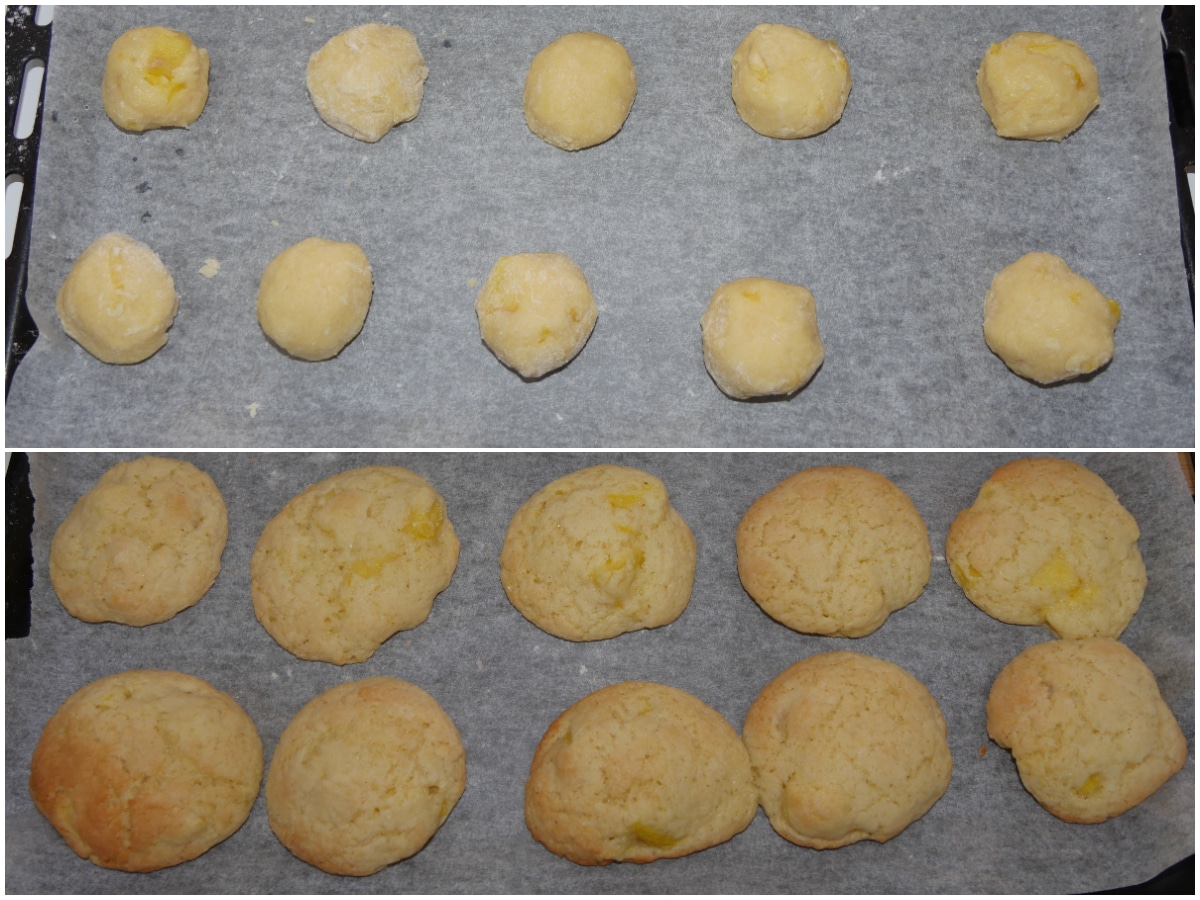 I biscotti alle pesche sono pronti, lasciateli raffreddare prima di staccarli dalla teglia, perché appena sfornati saranno molto morbidi.