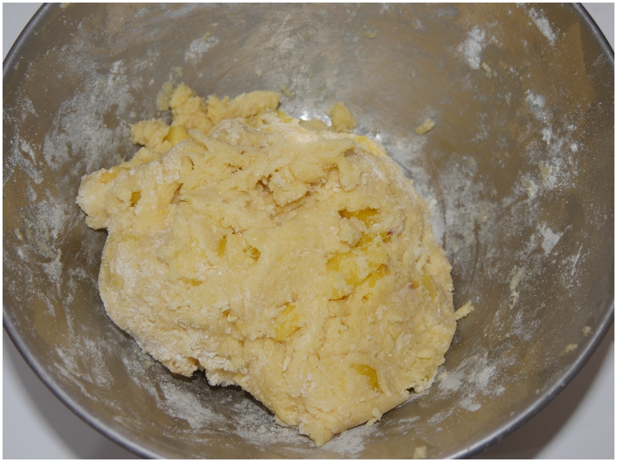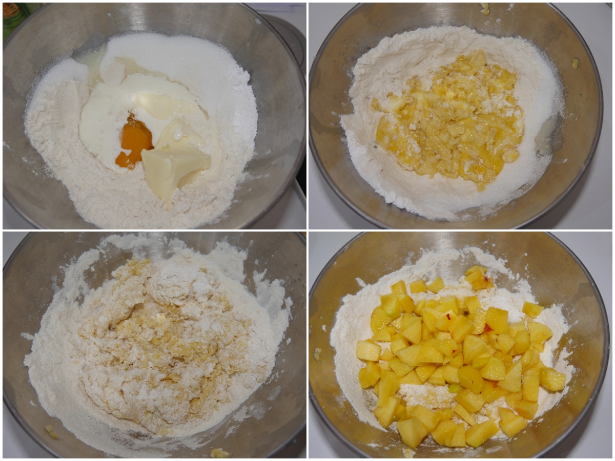 Una volta ottenuto un composto abbastanza omogeneo, unite anche le pesche.