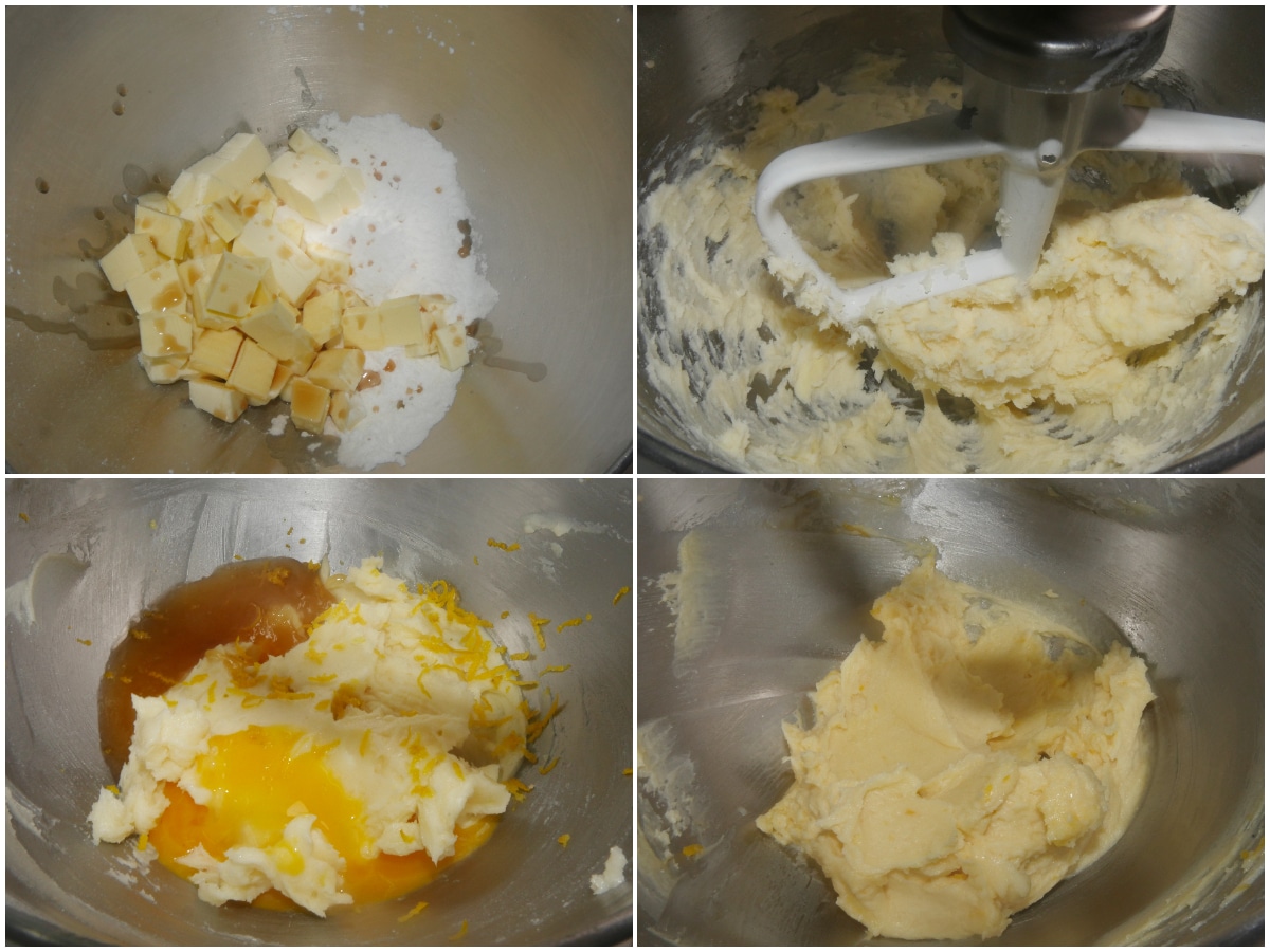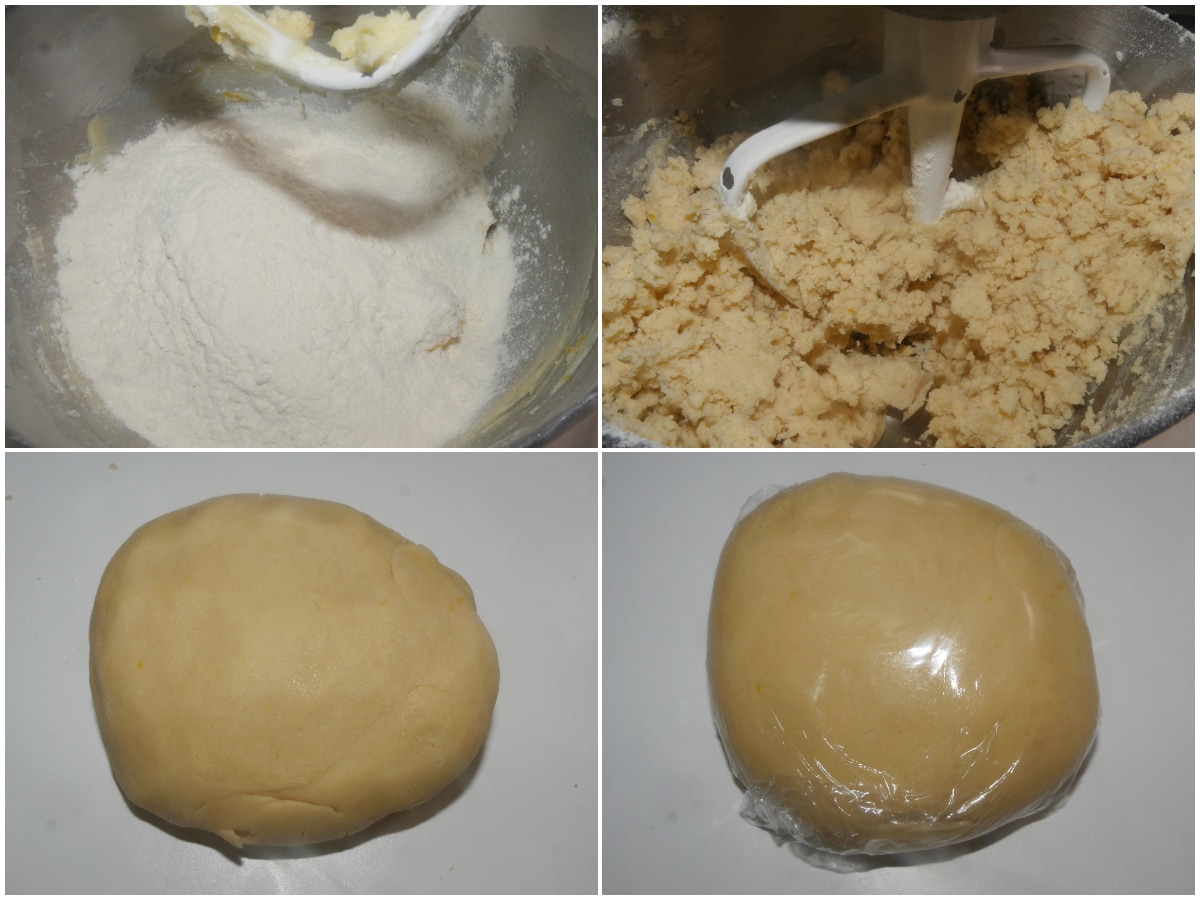 Innanzitutto preparate la pasta frolla: lavorate burro, zucchero e vaniglia fino ad ottenere una crema, poi incorporate uova e buccia di limone.