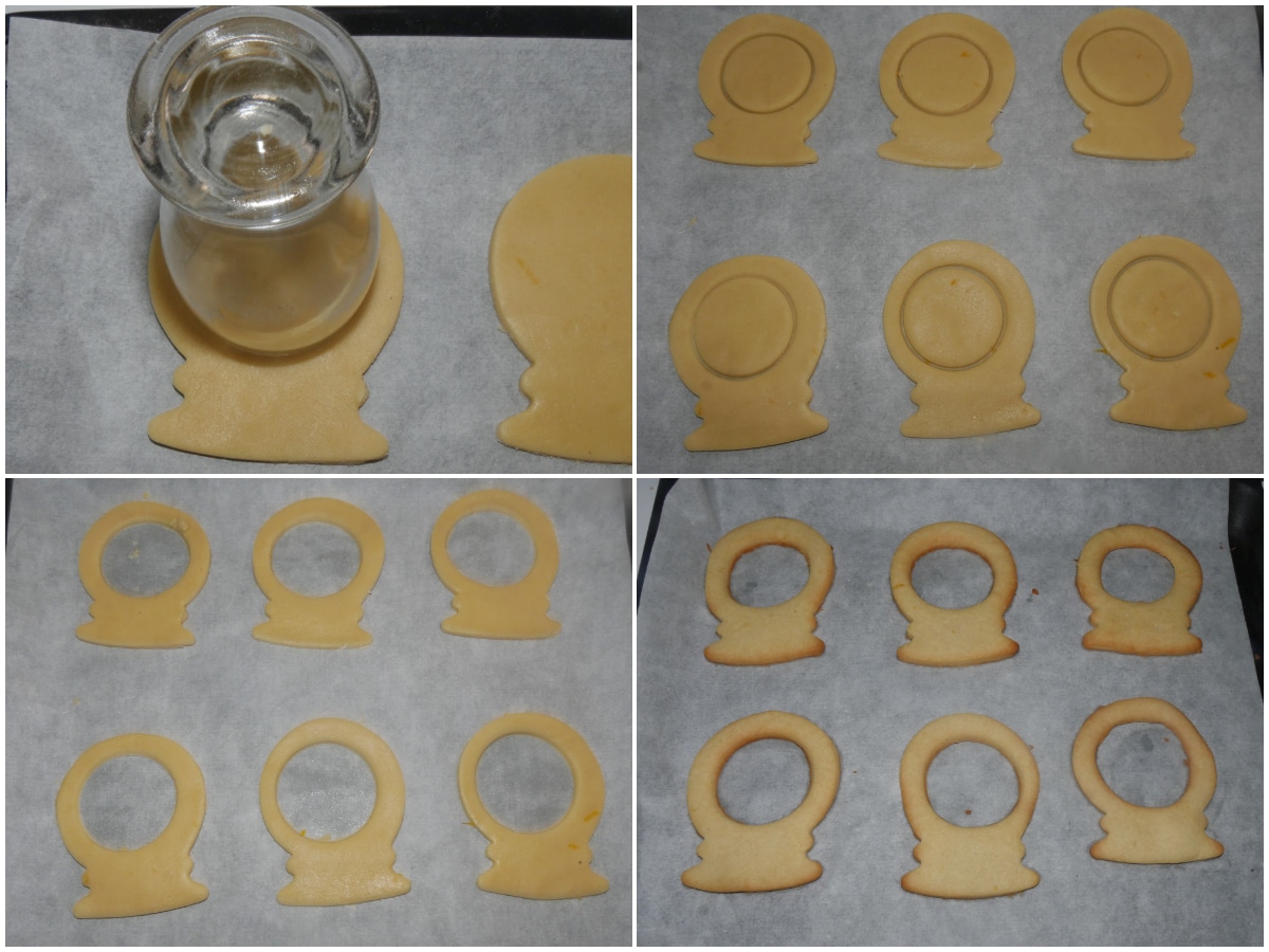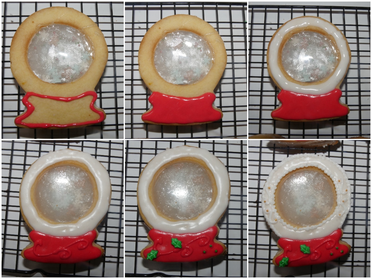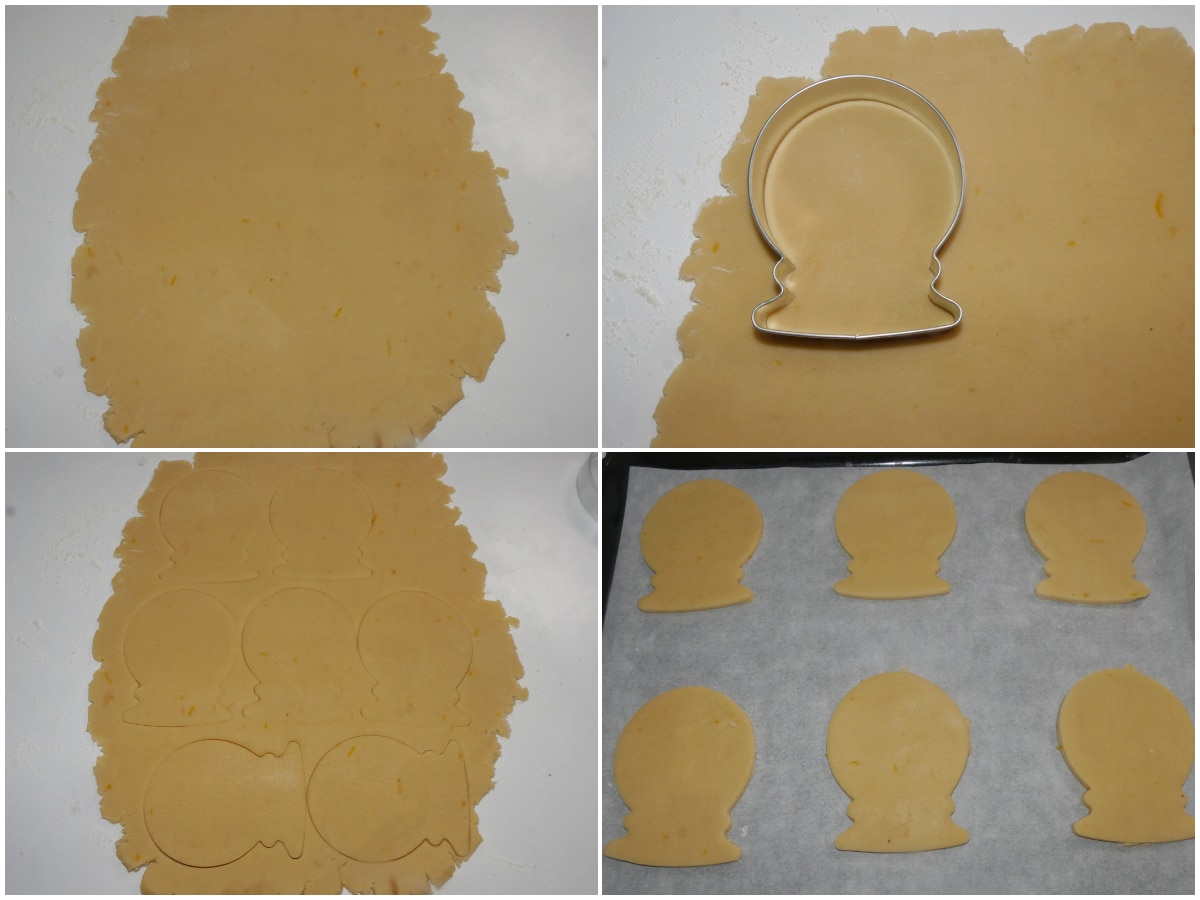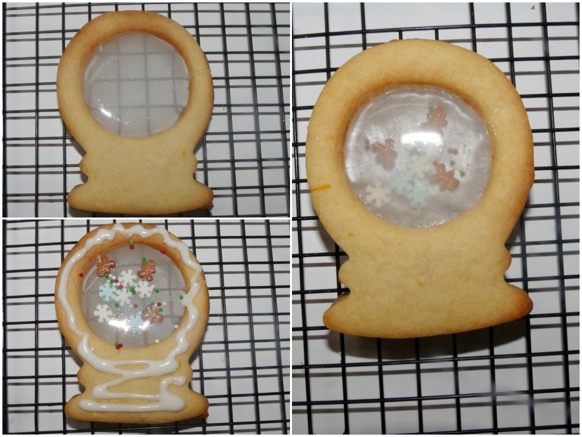 Ma veniamo alla ricetta: si tratta di biscotti di pasta frolla a forma di palla di neve. Avete presente le sfere di vetro con la base sotto, che quando vengono agitate sembra che nevichi dentro la sfera? Ecco, proprio quelle: qui trovate lo stampino per realizzarle. Una volta ritagliati e cotti 2 biscotti a forma di globo di neve si prepara l'isomalto e lo si aggiunge al centro del foro dei biscotti per creare il vetro, si lascia asciugare, si mettono dei confettini per creare la neve e si attaccano 2 biscotti tra di loro. Vi assicuro che spiegandolo sembra decisamente più difficile di quel che è, provare per credere!