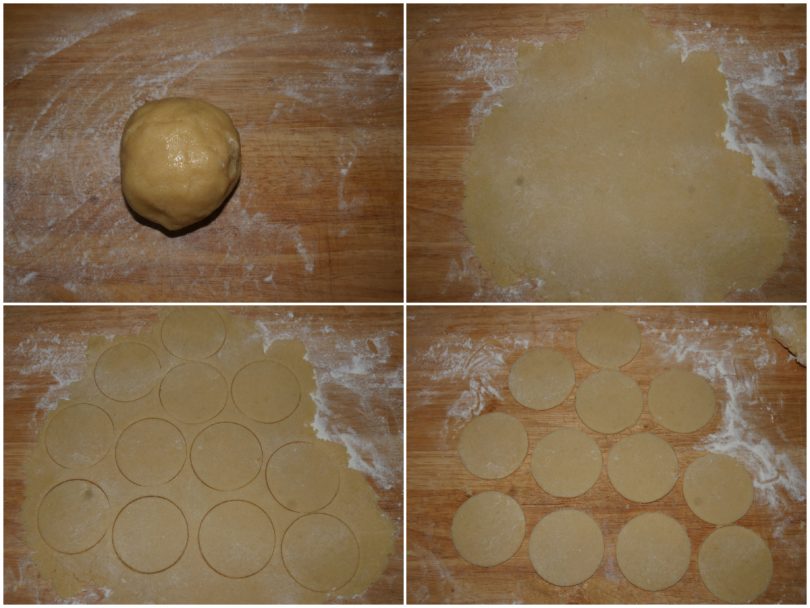 Riprendete la frolla, stendetela in una sfoglia sottile (circa 0,5 cm) e ricavate dei tondini con una formina (la mia era da circa 7-8 cm): ricordate che dovranno essere in numero pari, perché andranno abbinati a 2 a 2.