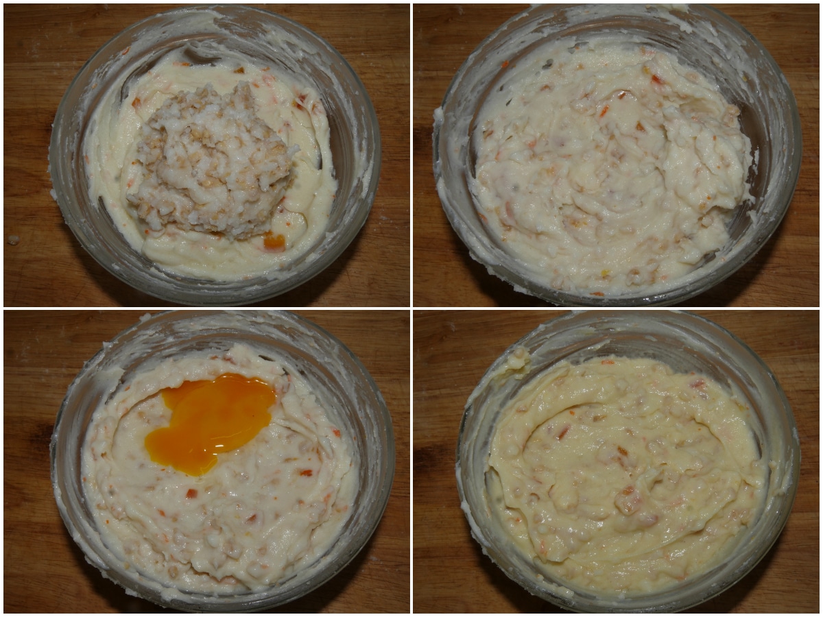 Aggiungete anche il grano cotto (scolato e sgranato ma non sciacquato) e il tuorlo, coprite con pellicola a contatto e lasciate in frigo per 1 ora.