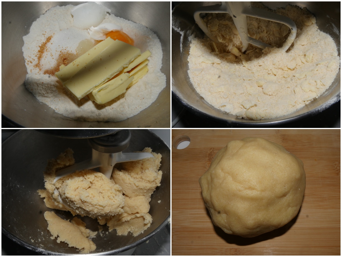 Innanzitutto preparate la frolla, semplicemente unendo tutti gli ingredienti in una ciotola e impastando velocemente, quindi rivestite con pellicola per alimenti e lasciate riposare in frigo per almeno 1 ora.
