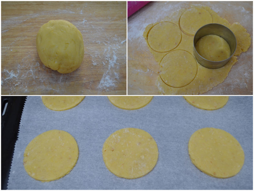 Con un coppapasta da 7 cm ricavate i biscotti, disponeteli un po' distanziati sulla teglia rivestita di carta forno e cuocete per circa 20 minuti in forno ventilato preriscaldato a 180°C.