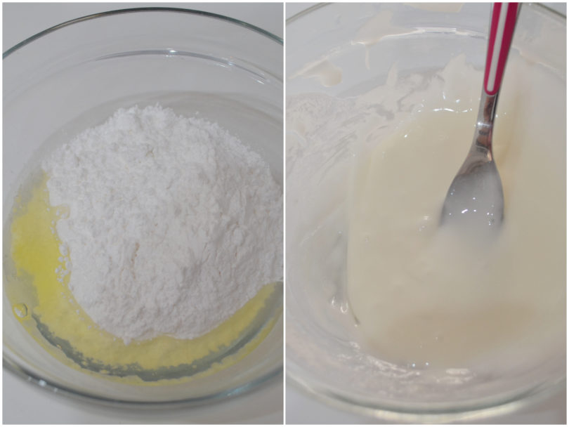 Nel frattempo preparate la glassa reale mischiando albume, zucchero a velo e poche gocce di succo di limone.