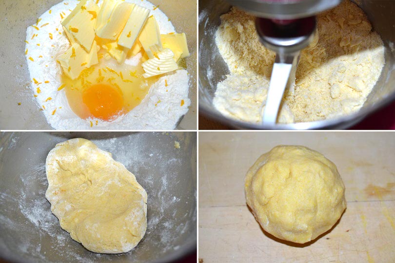 Innanzitutto preparate la frolla: mettete tutti gli ingredienti in una ciotola (con il burro freddo di frigo a tocchetti) e lavorate velocemente fino ad ottenere un panetto omogeneo, che farete riposare in frigo, coperto da pellicola, per almeno 30 minuti.