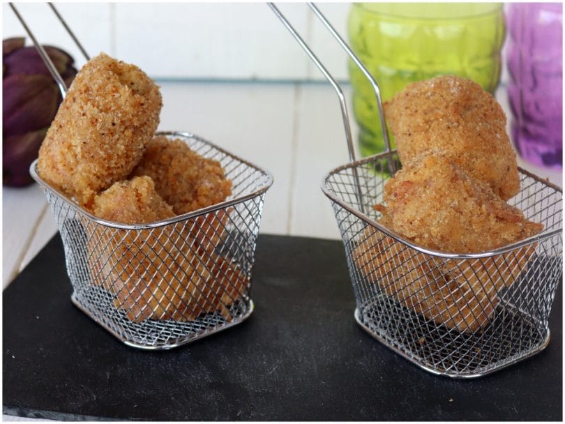 Sollevate e servite i bocconcini di carciofi al prosciutto