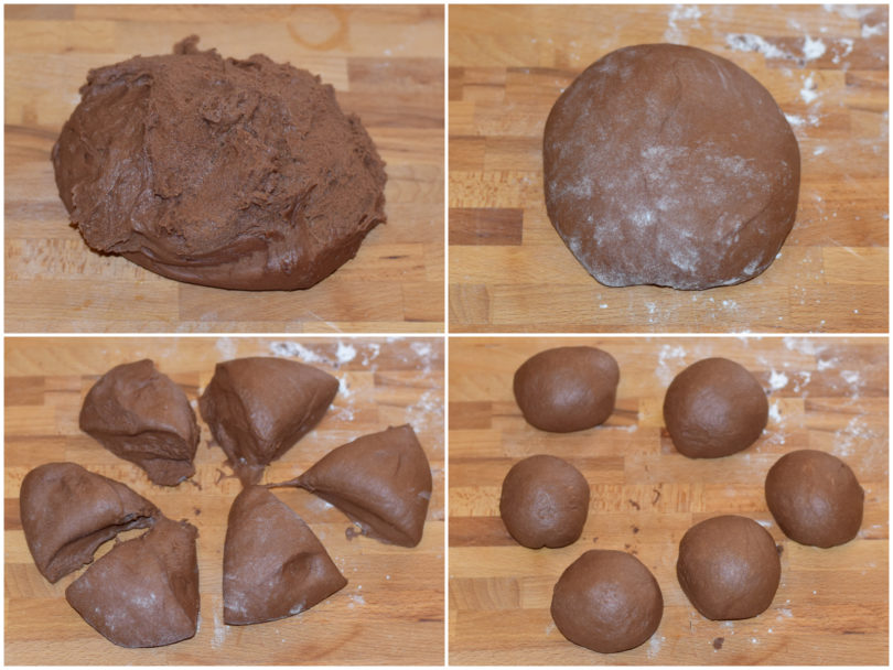 Riprendete l'impasto, sgonfiatelo bene con le mani, dividetelo in 6 parti uguali e lavoratele una per volta per creare delle palline.