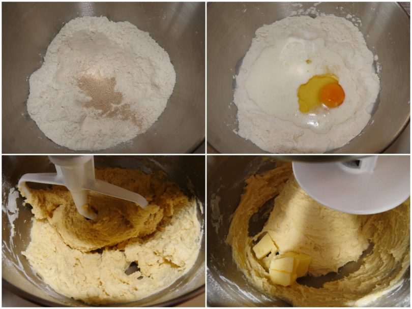 Unite lo zucchero e i liquidi (latte e uovo) e iniziate a impastare: quando l'impasto inizierà a incordarsi, iniziate ad aggiungere succo di limone (30 ml) e, poco per volta, il burro a pezzetti.
