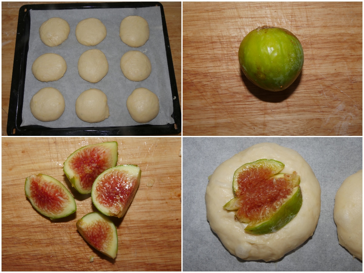 Lavate e asciugate i fichi, divideteli in spicchi e poi in fettine e mettetene un po' al centro di ogni brioche.
