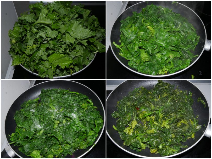 Pulite i friarielli, metteteli in una padella e fateli appassire.
