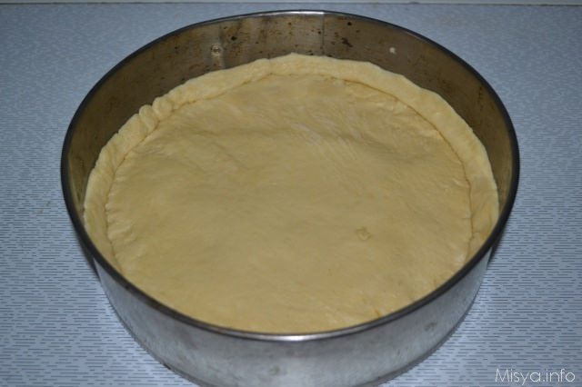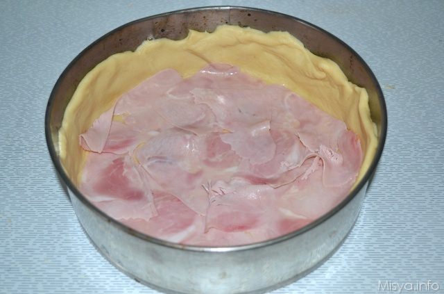 Con una delle 2 sfoglie foderate uno stampo imburrato. Ricoprite con una base di prosciutto cotto