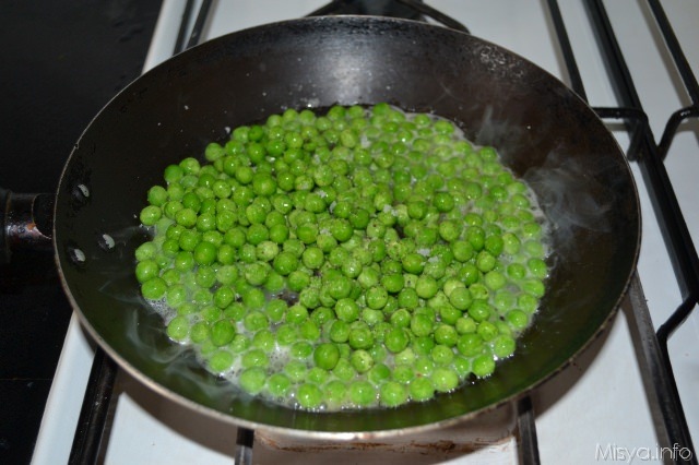 Preparate ora la besciamella e cuocete i piselli in una padellina con una noce di burro, sale e pepe, poi aggiungete una tazzina d'acqua e fate cuocere per una decina di minuti