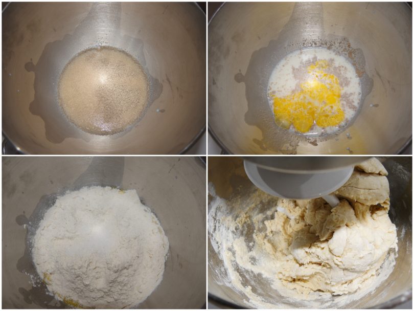 Innanzitutto preparate l'impasto: sciogliete lievito e zucchero nel latte, quindi aggiungete prima l'uovo sbattuto, poi la farina e sale e iniziate a impastare.