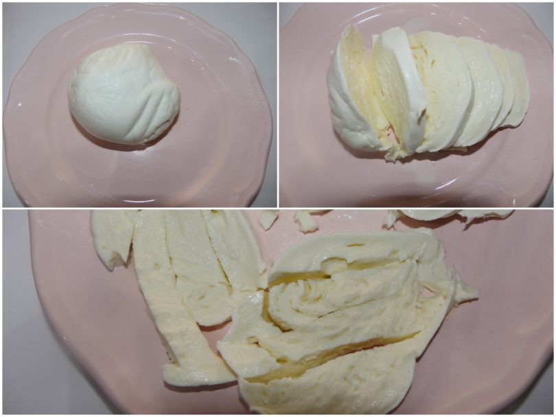 Nel frattempo che l'impasto lievita, tagliate la mozzarella a fettine e poi a listarelle e lasciatela sgocciolare.