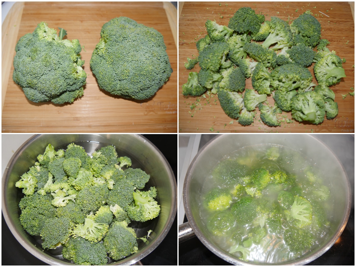 Nel frattempo mondate e lavate i broccoli, divideteli in cimette, metteteli in una pentola piena di acqua fredda e cuocete fino a 5 minuti dopo l'ebollizione, quindi scolateli.