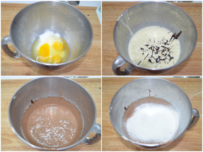 Incorporate poi la vaniglia e quindi il mix di burro e cioccolato, infine anche la farina setacciata.