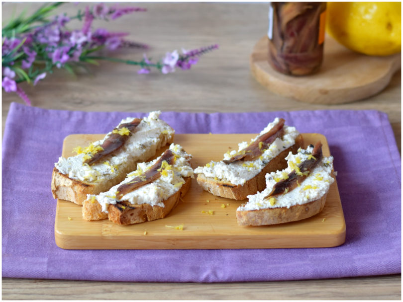Le bruschette alici e ricotta sono pronte, non vi resta che completare con altra buccia di limone se gradita e servire.