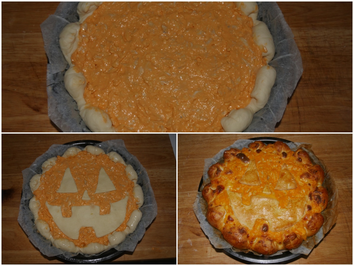 Naturalmente la farcitura può variare enormemente: come primo esperimento, dato il successo delle mie Buffalo chicken wings (dove trovate, tra l'altro, la ricetta per la salsa Buffalo), ho deciso di osare e lanciarmi sul Buffalo chicken. Che dire... una vera bomba! E visto il periodo di Halloween, chiaramente ho dato una nota mostruosa alla mia torta salata mettendo la sacoma tipica dellazucca stregata come decorazione :P