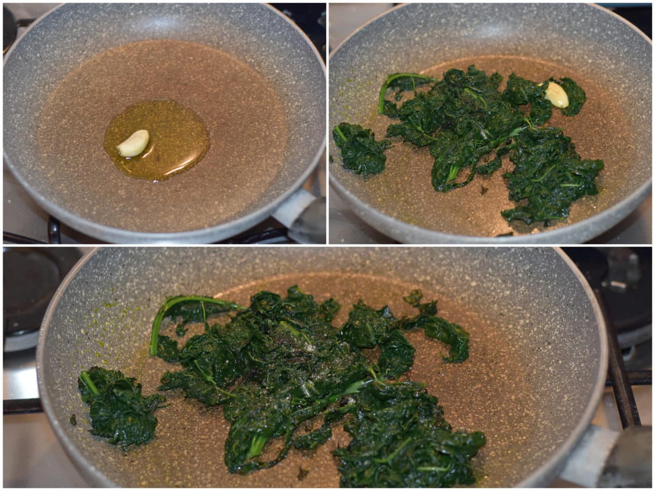 Fate scaldare 1 filo d'olio in una padella antiaderente con l'aglio, poi unite anche il cavolo, lasciatelo insaporire mescolando per qualche minuto, poi eliminate l'aglio e aggiustate di sale.