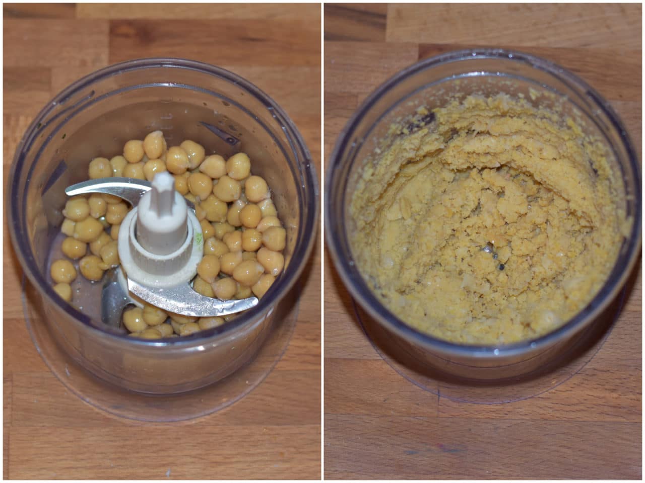 Nel frattempo che il cavolo cuoce scolate bene i ceci e frullateli grossolanamente insieme con sale, limone e 2-3 cucchiai di olio.