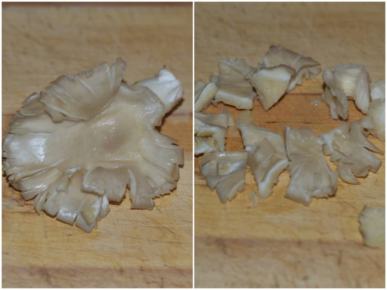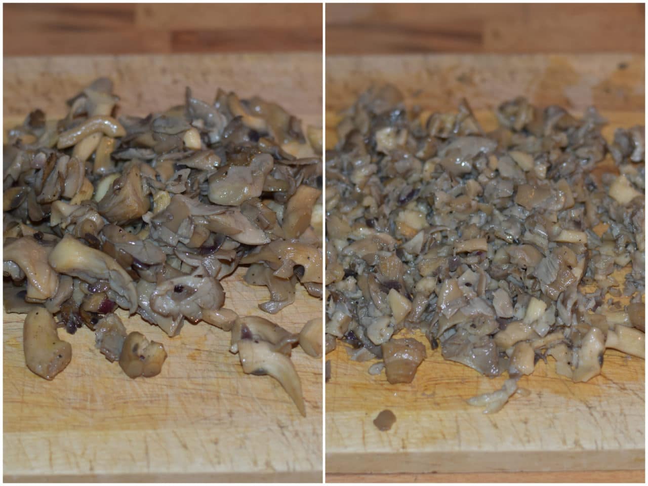 Una volta cotti, eliminate l'aglio e tritate grossolanamente i funghi.