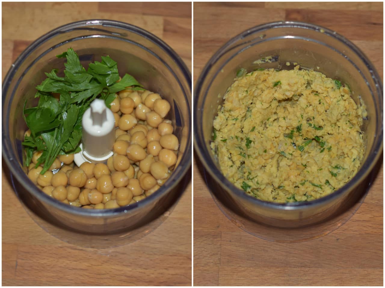 Nel frattempo, scolate bene i ceci, metteteli in un mixer con il prezzemolo e un filo d'olio e frullate.