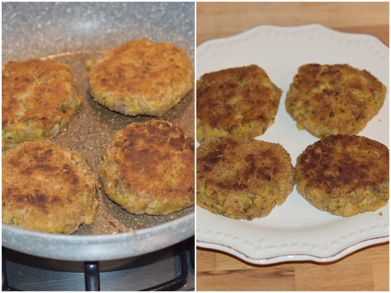 Infine cuocete i burger a fiamma media con un filo d'olio in una padella antiaderente, facendoli dorare da entrambi i lati, basteranno circa 10 minuti dal primo lato e 5 dal secondo.