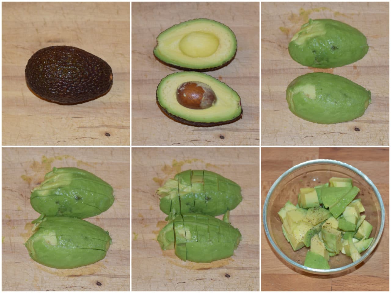 Intanto mondate l'avocado e tagliatelo a cubetti (qui la guida per farlo al meglio), poi conditelo con sale, pepe e lime.