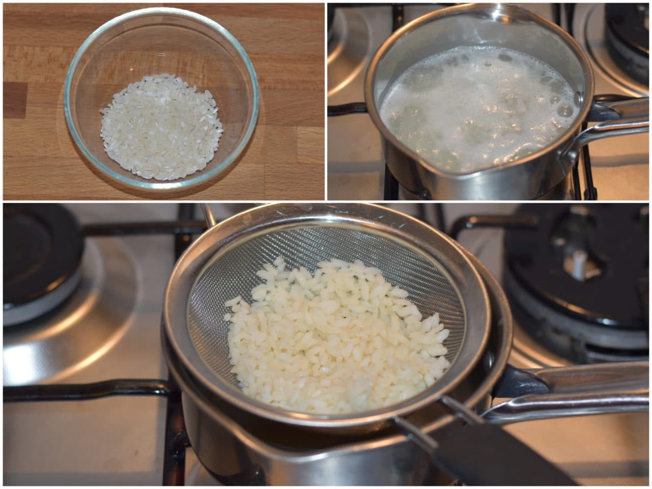 Innanzitutto mettete a bollire l'acqua per il riso, leggermente salata.