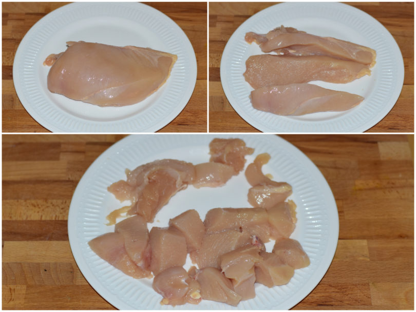Tagliate il pollo a bocconcini e fatelo rosolare in padella antiaderente con burro e il mix di aromi frullato.